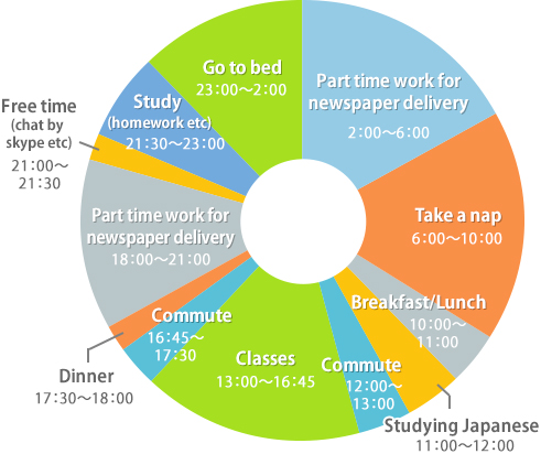 Introducing the daily schedules of students attending Linguage Japanese language school.